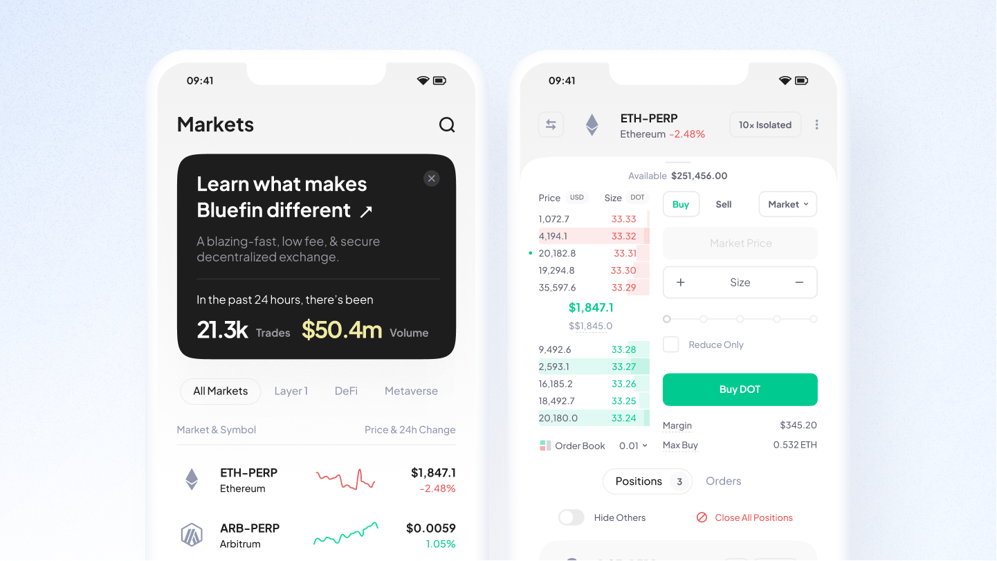 However, with advances in blockchain scaling and bridging, more progressive projects are possible. As such, Bluefin is a Web3 protocol for asset exchange, combining the performance of CeFi with the benefits of decentralized finance (DeFi). Initially targeted at the perpetual swap market, Bluefin protocol is extensible and customizable, designed to keep pace with the innovation and market dynamics in the digital assets space.